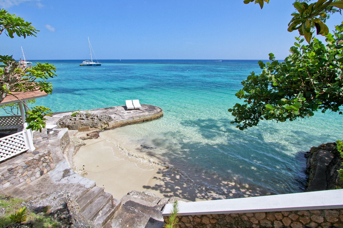Afterglow/ Mamiti Cove Villa is a wonderful waterfront villa located in a quiet part of Ocho Rios. This luxury villa Jamaica is located near the Sandals Royal Plantation and Jamaica Inn. The wonderful tropical escape nestles amongst lush tropical gardens tended by a dedicated gardener. This charming beachfront villa in Jamaica offers three luxurious bedrooms.