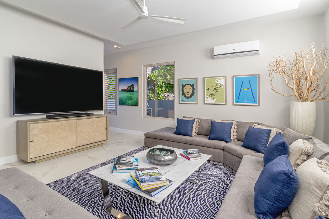 - Media Room with comfortable sofas and a larger 86" TV